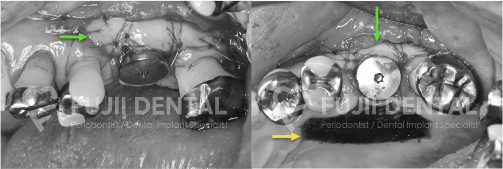 抜歯後に骨を増やす処置では、頬側の歯肉を引っ張るため、術後に角化歯肉の幅が失われやすくなります。